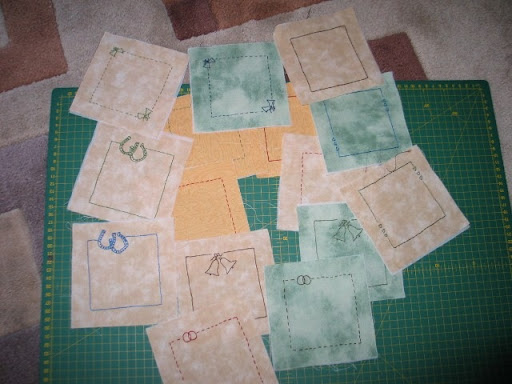 These are some of the stitcher's I have made for the quilt horse shoes ,rings, bells, and doves .The stitcher's I have made them so the family's can sign there name's in the middle .All I have to do is to sow it together.